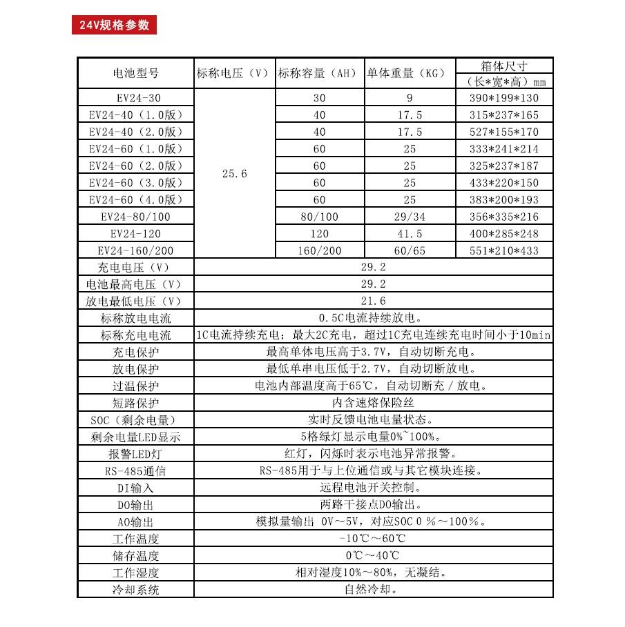 霍克鋰電池 24V 規(guī)格參數(shù)